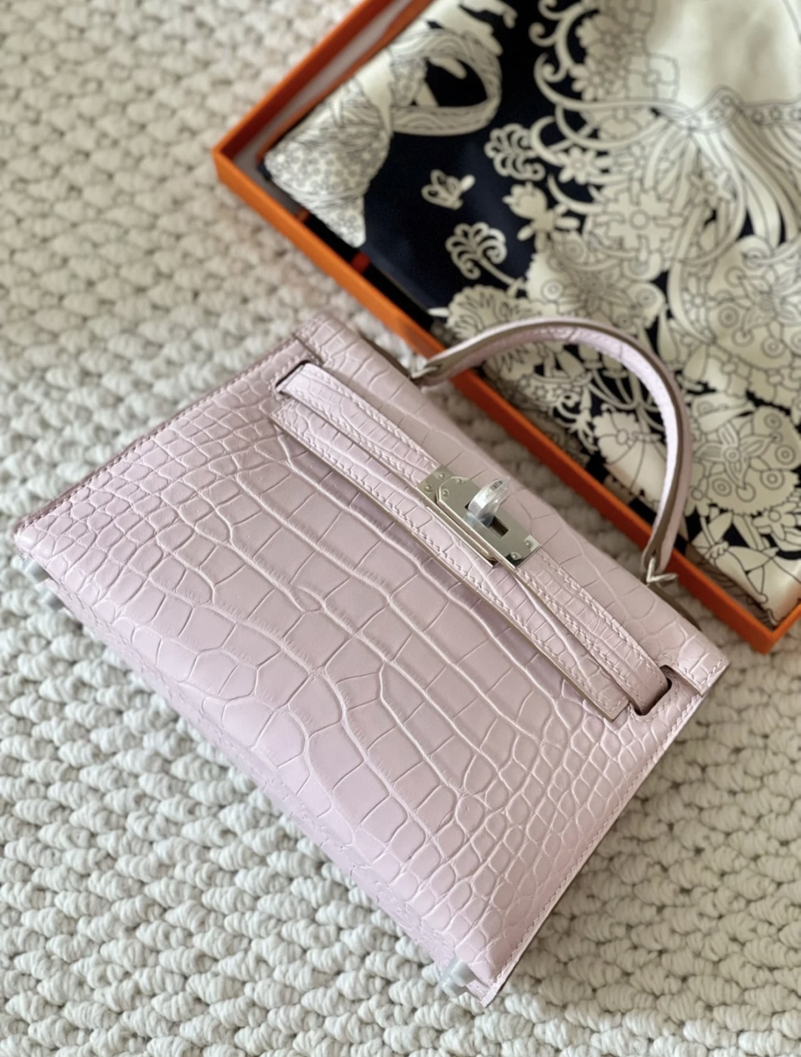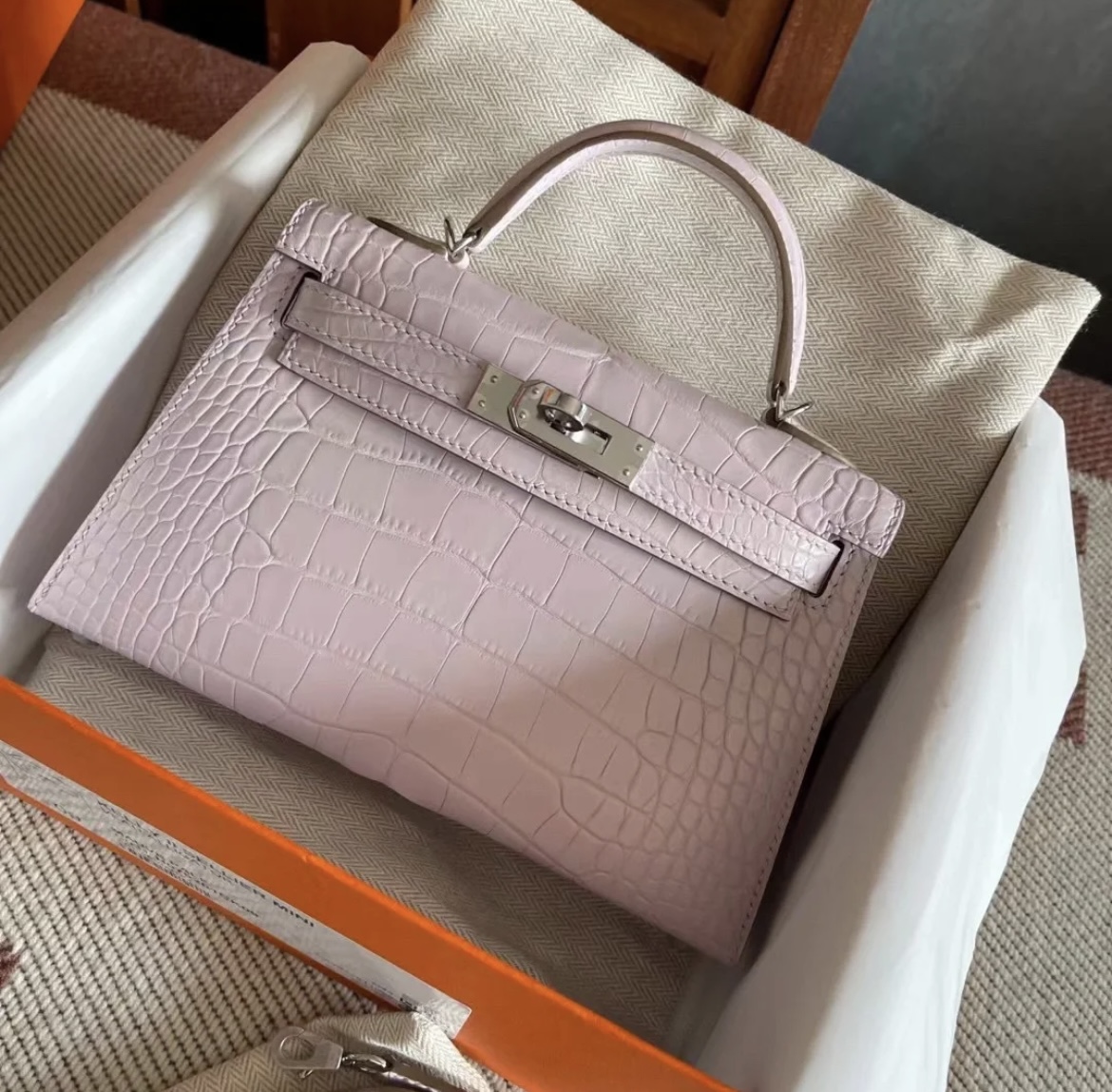 Crocodile skin Mini Kelly #09 Mauve pale