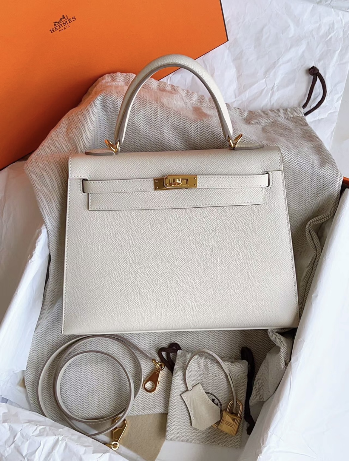 Hermes Kelly #10 Craie 25-28cm Epsom Sellier