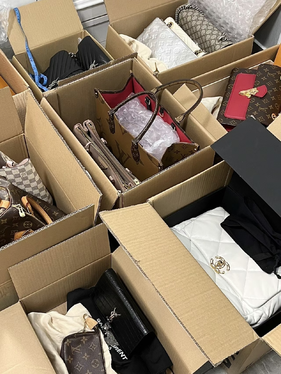 Each bag comes with a box and dust bag of the same brand, and since we offer free shipping, we also bear the shipping cost ourselves. Please do not compare the prices of other stores without complete packaging with ours
